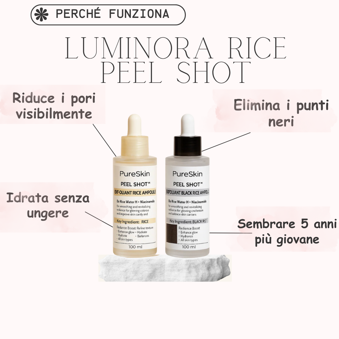 LUMINORA Rice Peel Shot | Siero Esfoliante al Riso Nero e Bianco
