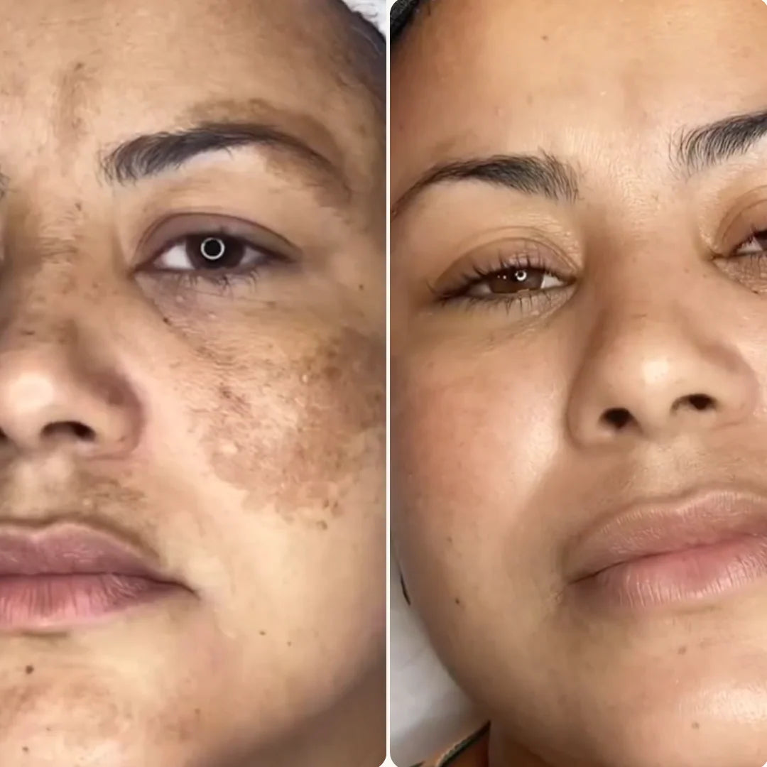 "Ho macchie pigmentarie e colorito spento. Con lo stress del lavoro, la mia pelle era diventata grigia e opaca. Questo duo mi ha ridato una luminosità incredibile in solo 1 settimana e le mie macchie sono quasi sparite! Anche senza trucco, finalmente mi sento radiosa."